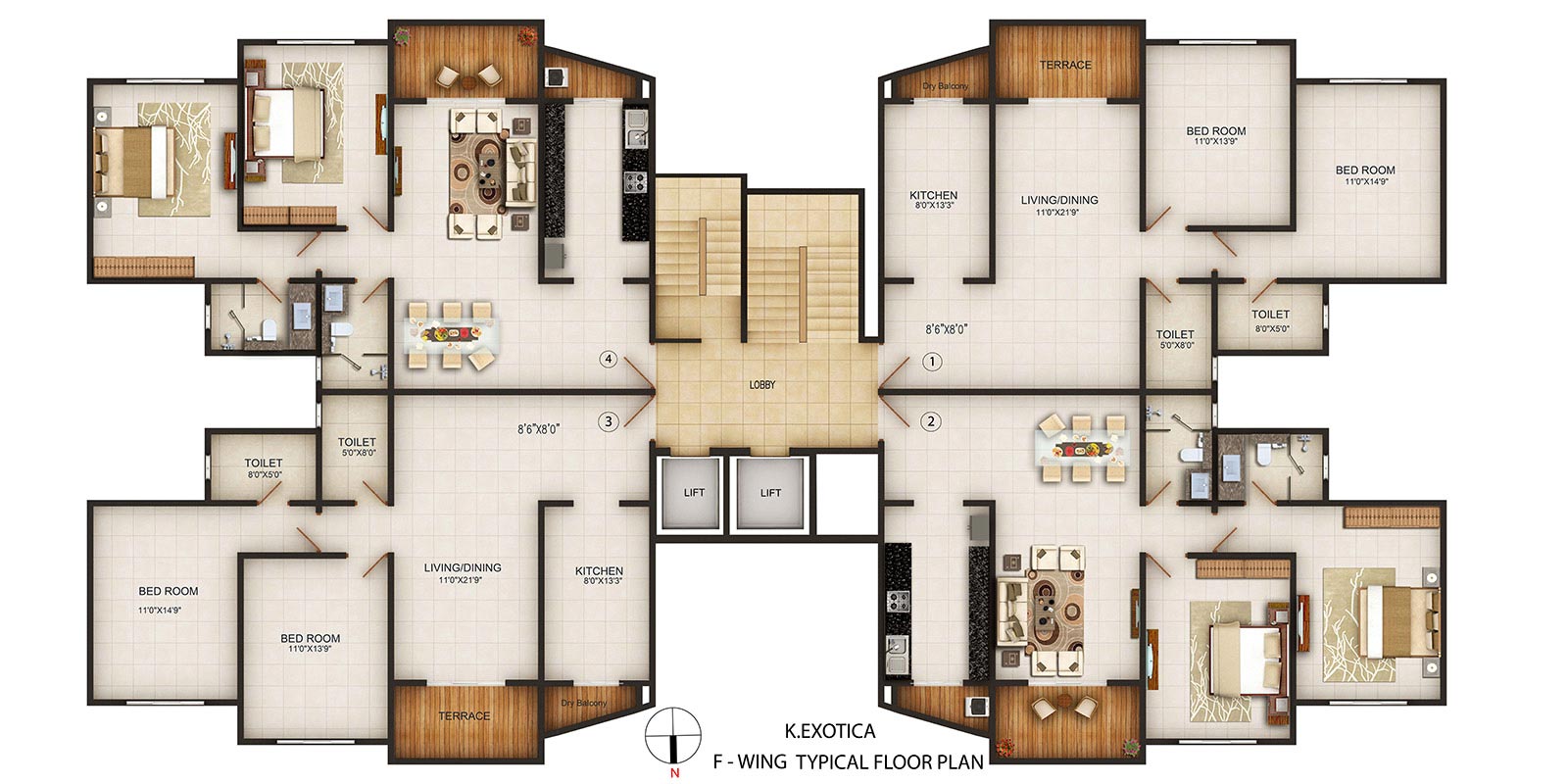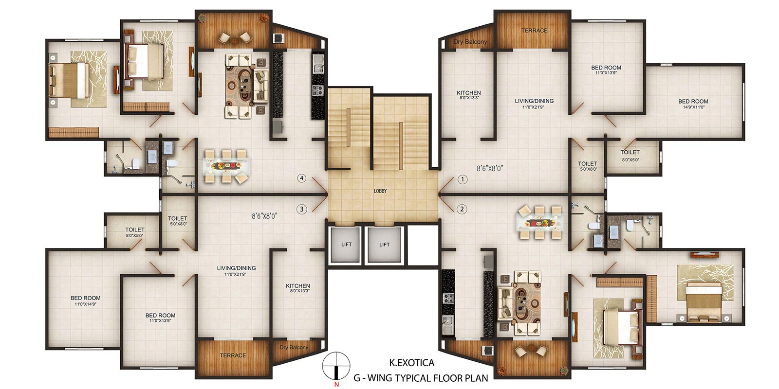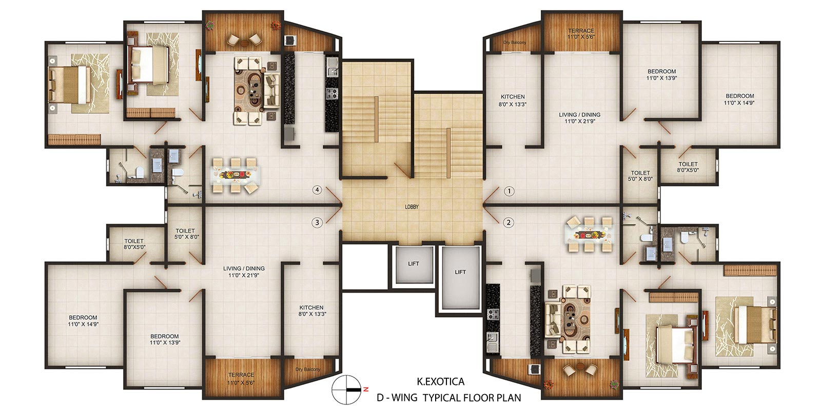 A tasteful manifestation of contemporary world class architecture, the Hafeez Contractor designed Konark Exotica is a strategically located property with a scenic mountainous backdrop for that genuine ‘Nestled in Nature’ vibe. Exotica has a multi-level construction featuring a refreshing central garden and is hedged by a beautiful forest. With abundance of greenery inside as well as outside the complex, it is a delight to walk around on the ample footpaths in Exotica. There is plenty of fresh air to rejuvenate you and scenic tranquility to inspire your creative side!